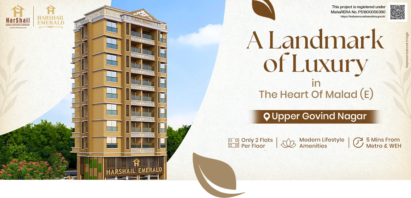 Your Sanctuary in Upper Govind Nagar, Malad (East). Experience the perfect blend of sophistication and urban convenience with our 3 BHK and 5½ BHK apartments. Revel in spacious interiors flooded with natural sunlight and excellent ventilation, surrounded by lush greenery.