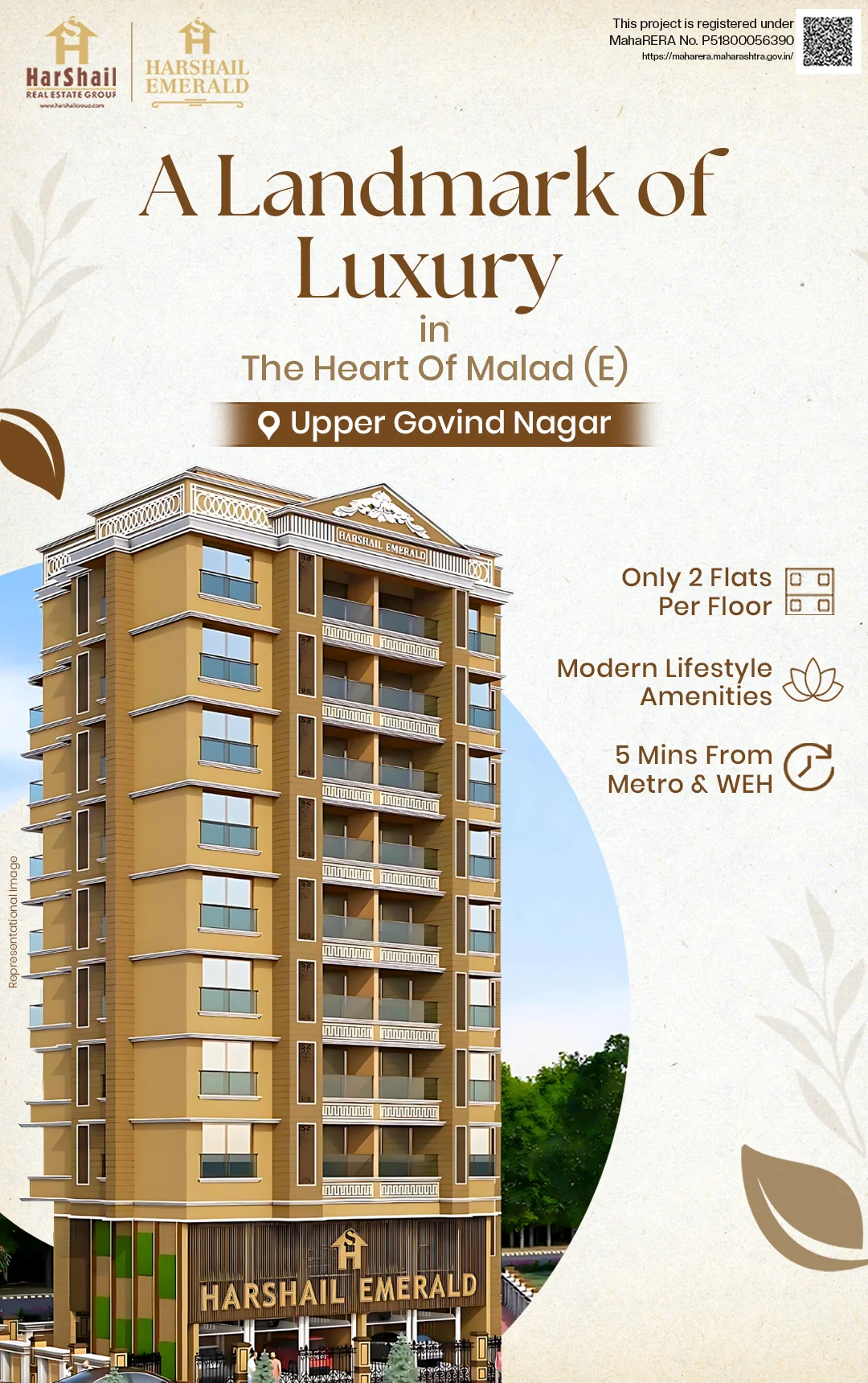 Your Sanctuary in Upper Govind Nagar, Malad (East). Experience the perfect blend of sophistication and urban convenience with our 3 BHK and 5½ BHK apartments. Revel in spacious interiors flooded with natural sunlight and excellent ventilation, surrounded by lush greenery.